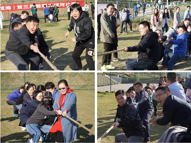 比赛现场气氛热烈,随着比赛开始的哨声响起,每一队参赛队员都斗志昂扬,全力以赴,大家紧紧抓牢手中的绳子,拼尽全力向后拉。场边的啦啦队员们也热情高涨,加油声节奏统一响彻全场。最终海洋科学与技术学院队异军突起,力压群雄,斩获冠军,后勤厨神队、教务处队、信息科学与工程学院队分获亚、季军和第四名。(张玉芹、张冰、康荣臻 文/图)